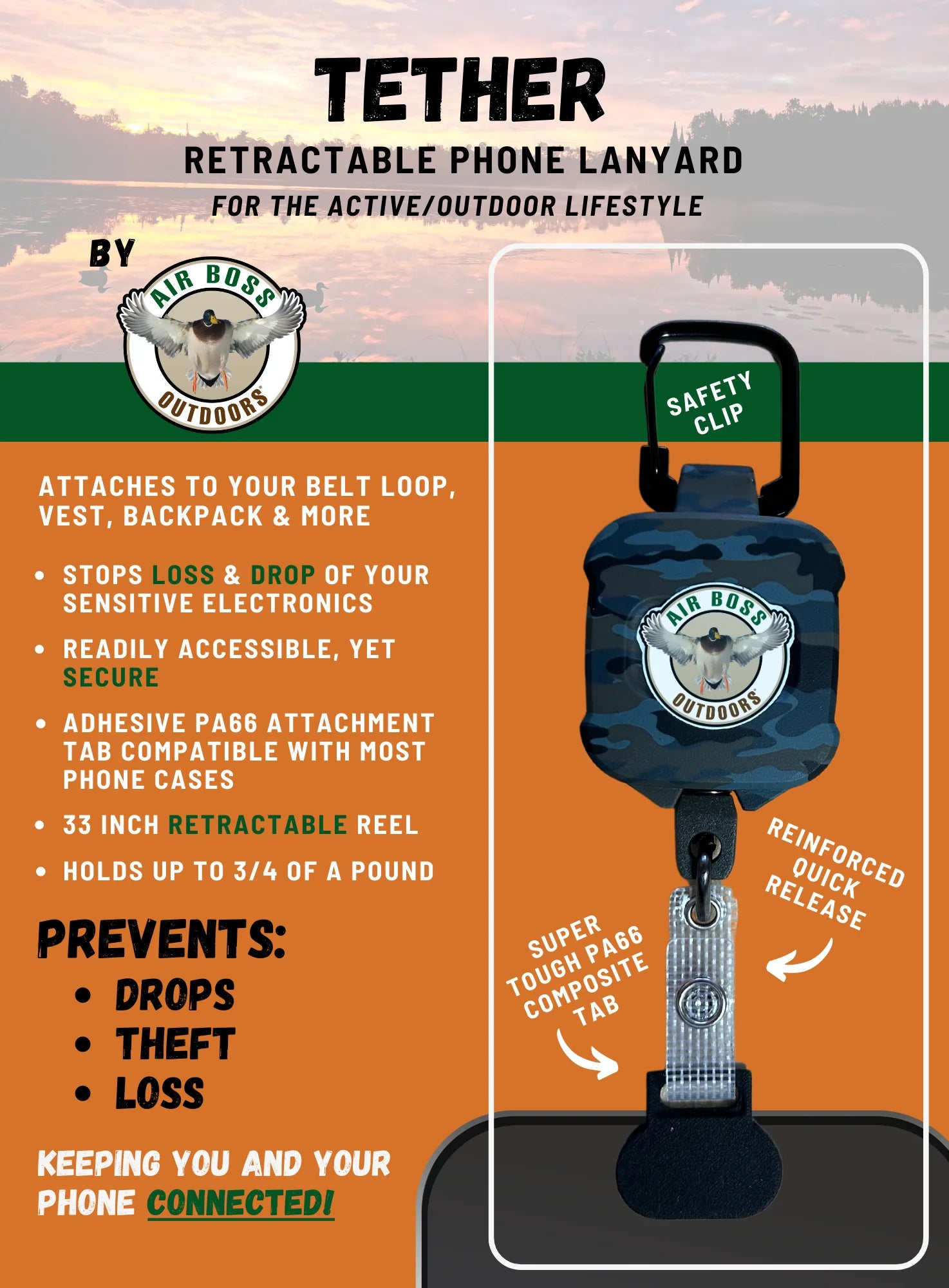 Retractable Phone Lanyard for the outdoor lifestyle.